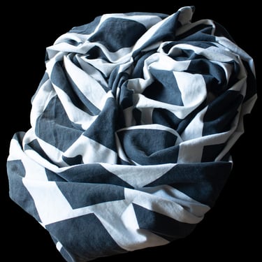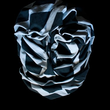 Ist es möglich die Decke so zu falten, dass ein abstraktes Bild, oder sogar etwas Gegenständliches entsteht? Gut eine Stunde versuchte ich, etwas daraus zu erschaffen, blieb aber unzufrieden und meine Stimmung kippte durch die nervige Arbeit. Letztendlich verabschiedete ich mich von dem Falten und schob die Decke oval förmig zusammen. Durch einiges Zupfen und Schieben erreichte ich Andeutungen von Augen, Nase und Mund.