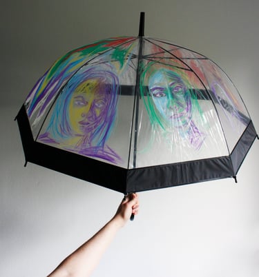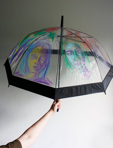 Die transparenten Flächen meines Regenschirms, luden mich dazu ein, sie zu gestalten.