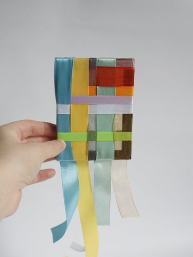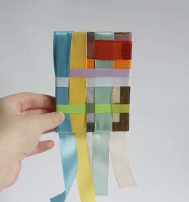 Geschenkbänderreste und ein alter kleiner Bilderrahmen, inspirierten mich zu dieser kleinen abstrakten Arbeit.