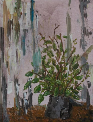 Durch meine Experimentierfreude, habe ich mich keinem Medium verpflichtet. Hier eine Auswahl kleiner analoger Arbeiten: Von traditioneller Malerei bis zu abstrakter Anordnung eines vertrockneten Blumenstraußes.