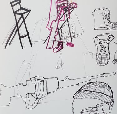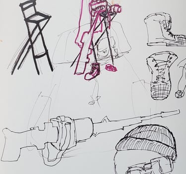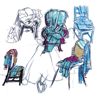 Ursprungsgedanke war die Erschaffung eines Stuhles voll mit Wäsche, diese Idee entwickelte sich anhand Skizzen zu der fertigen Arbeit.